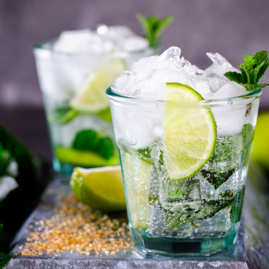 Machaca las hojas de menta en un vaso con el jarabe de azúcar y el jugo de limón.